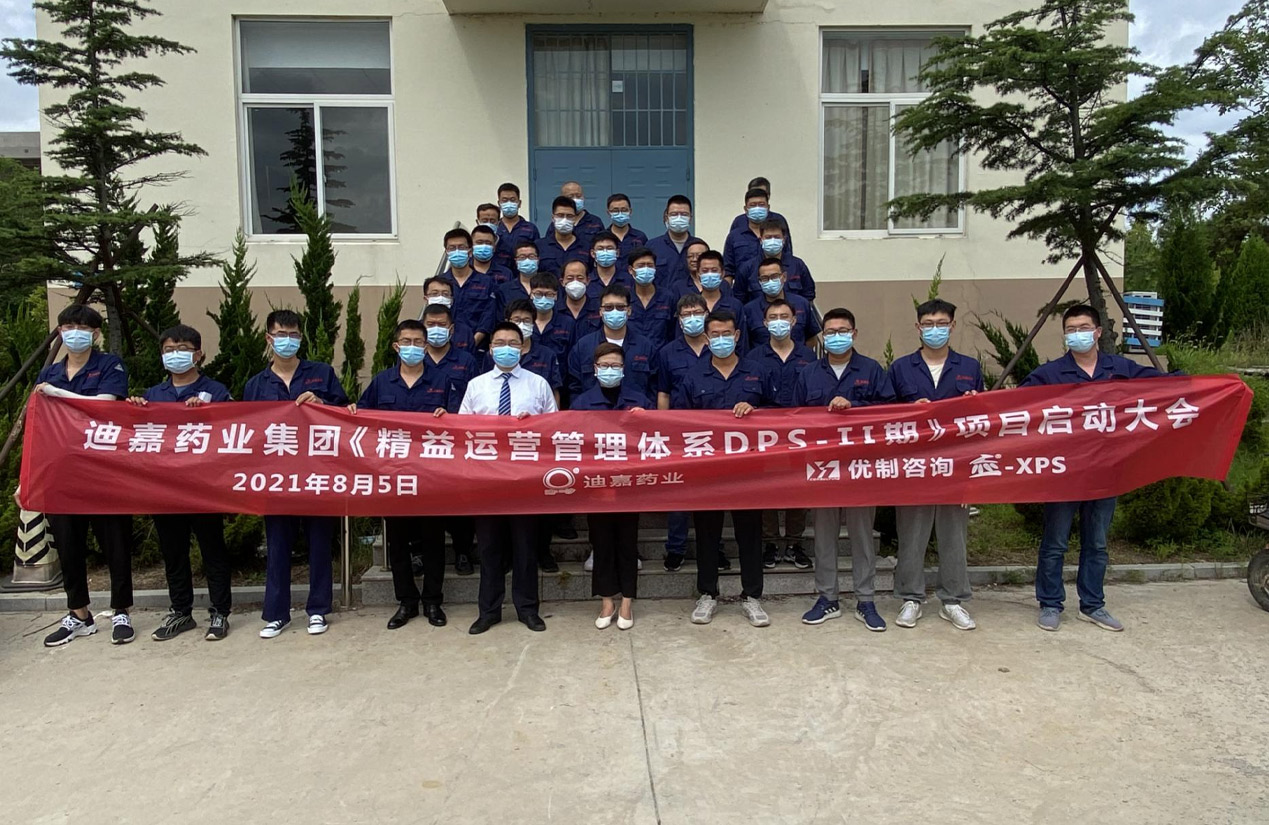 2021年8月5日,迪嘉药业集团召开精益运营管理体系项目(Ⅱ期)启动大会,迪嘉药业集团总经理王丹琦、生产总监姜磊、优制咨询总监杨煜参加了会议,迪嘉总经理王丹琦发表项目结案致